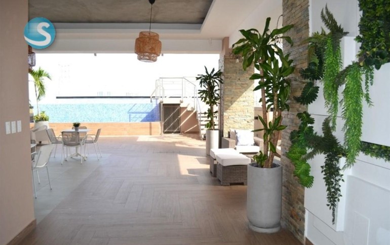 - Excelente área social con: salon de tv y reuniones, piscina, terrazas techadas y destechadas, gimnasio equipado y climatizado, salon de juego de niños.